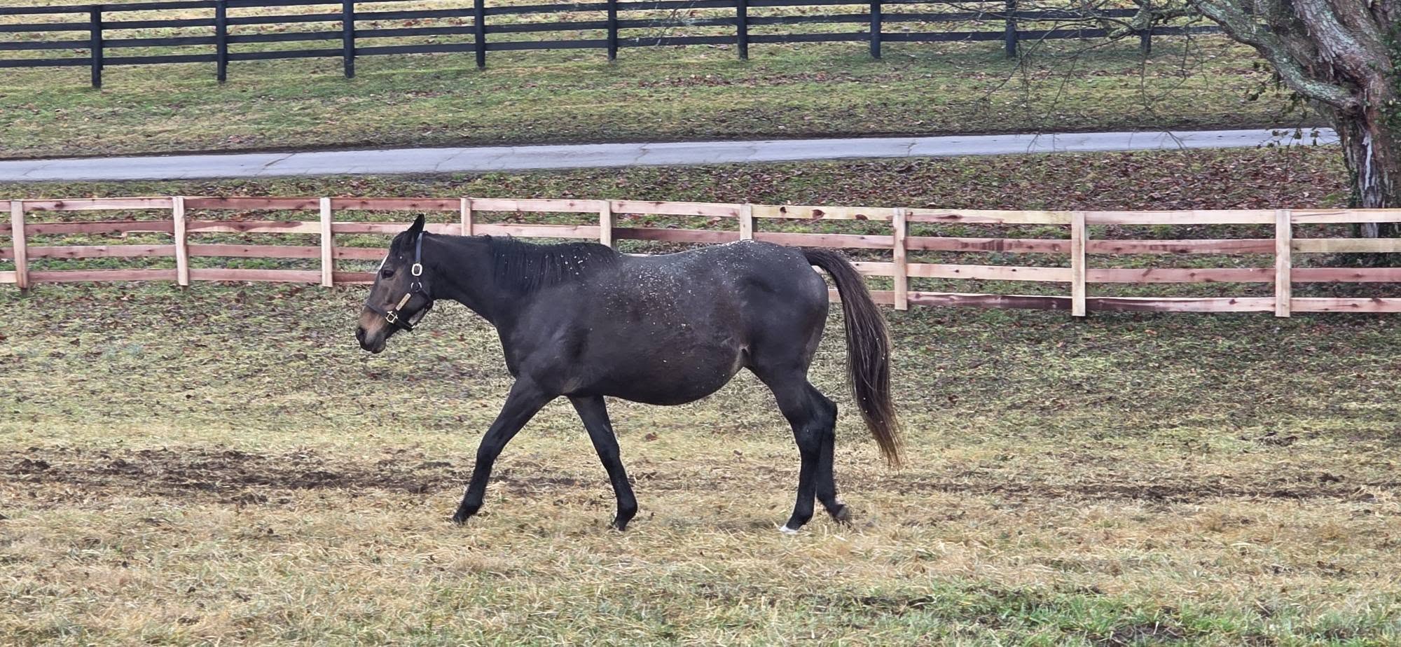 Our sweet Bella Luna, who came to us from the January Keeneland Sale, is currently on farm rest following a suspensory injury she sustained during training. A recent veterinary scan determined she needs an additional 60 to 90 days before returning to work.