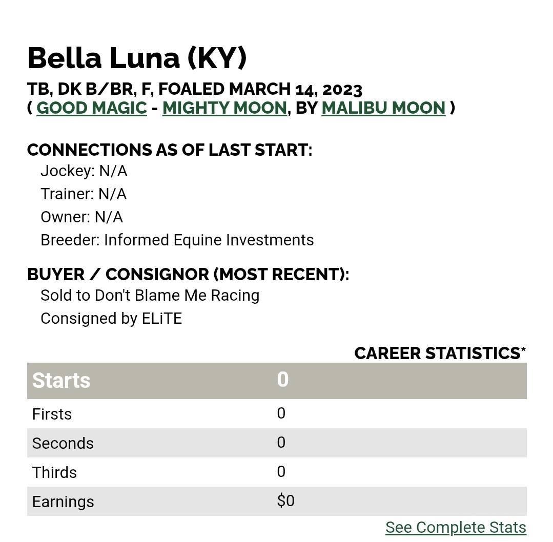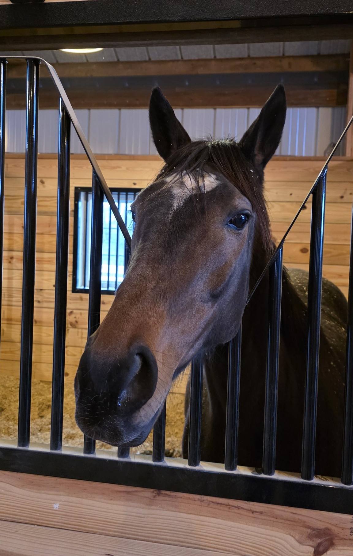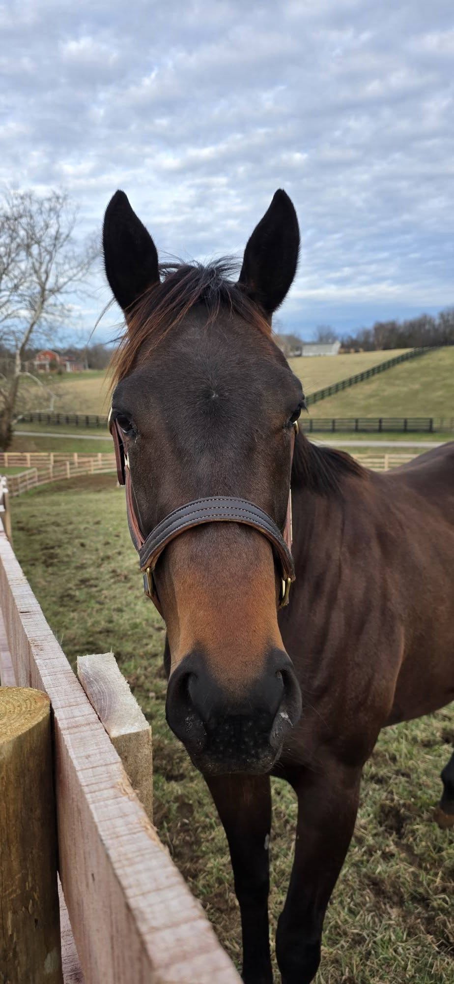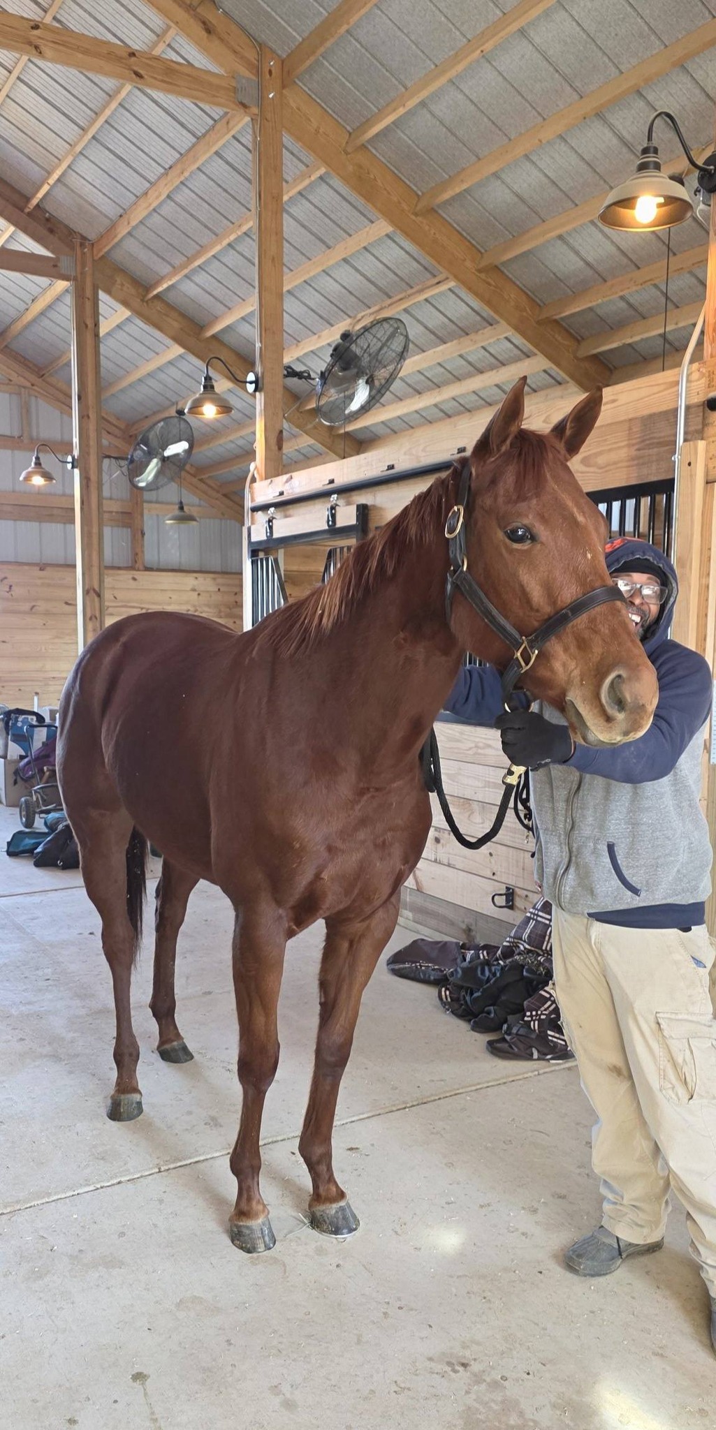 Di picked her up Tuesday morning, and within moments, it was settled: Bella Luna is hers. An absolutely sweet filly by Good Magic—the same sire as Mage, a connection that felt immediately meaningful—out of Mighty Moon by Malibu Moon. She has a quiet confidence about her that’s impossible not to fall for.